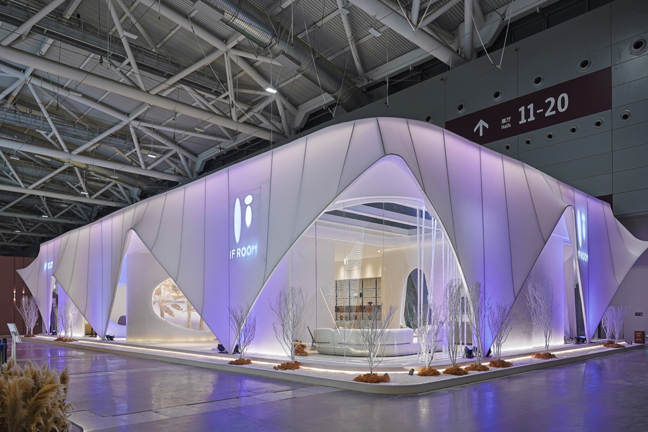 据了解,“宫阙”是喜临门推出的未来主义家居品牌IFROOM的展馆,这也是该品牌首次公开亮相。从外观上来看,「宫阙」不仅借用了中国特有的建筑结构“飞檐"、“斗拱”,如被北风吹起的燕尾、振翅的雄鹰,呈现自然美的同时又显现威严之美,并将西方设计的线条感融入其中。展馆整体设计“虽由人作,宛自天开”,吸引了众多专业设计师、家居时尚博主、家居爱好者的打卡。