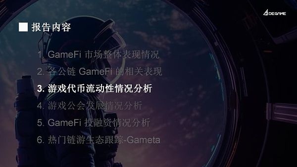 / 游戏代币流动性情况以及 GameFi 投融资情况进行拆解分析;