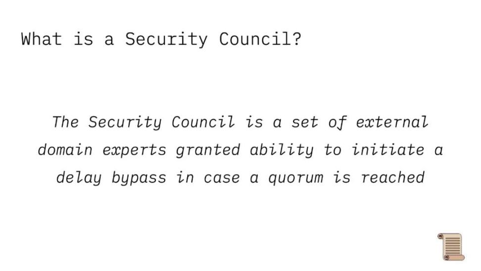 这里的安全委员会,是外部的领域专业人士的集合,例如 L2Beat。只要他们的投票达到了规定的阈值,他们将可以快速通过延迟,进行升级。