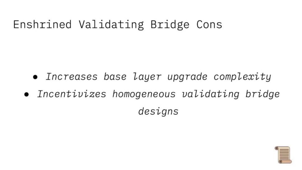 并且增加了 L1 的升级难度,需要设计同质化的验证跨链桥合约。