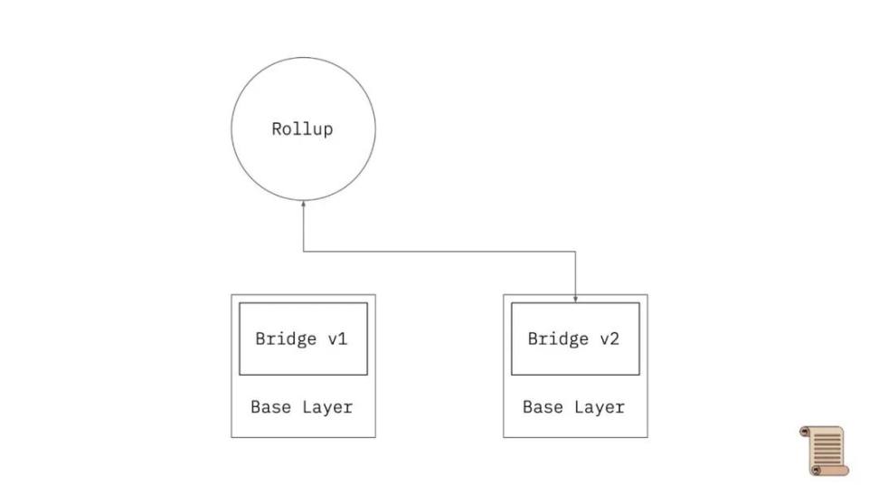 通常,我们在对 Rollup 做升级时,我们会在 Base Layer 重新部署新版本的跨链桥,新版本的 Rollup 将直接链接新版本的跨链桥。