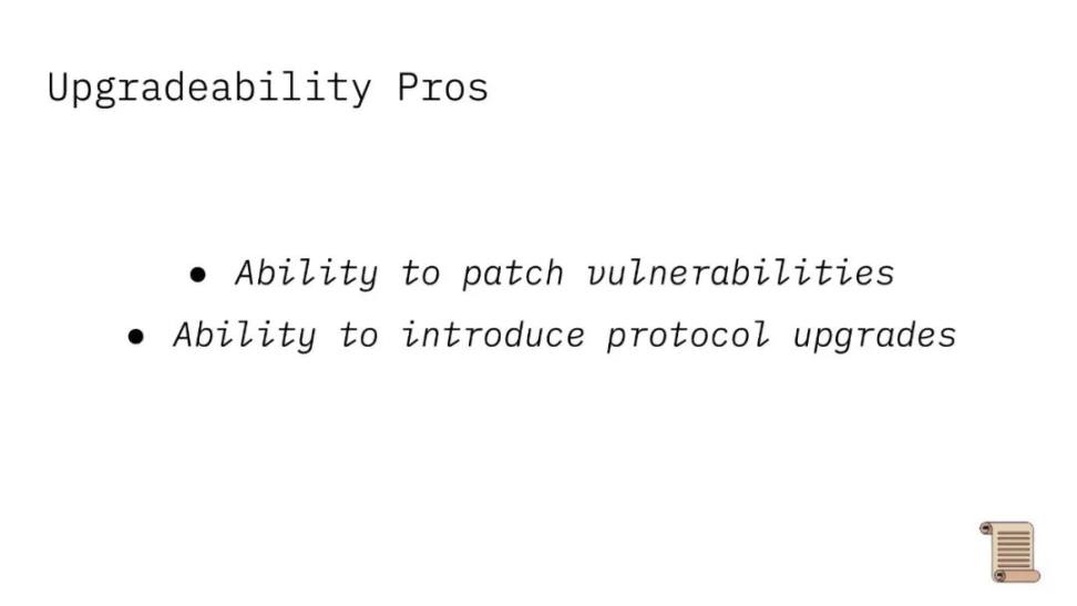 可升级性的优点在于可以处理出现漏洞的脆弱性,可以引入协议升级。