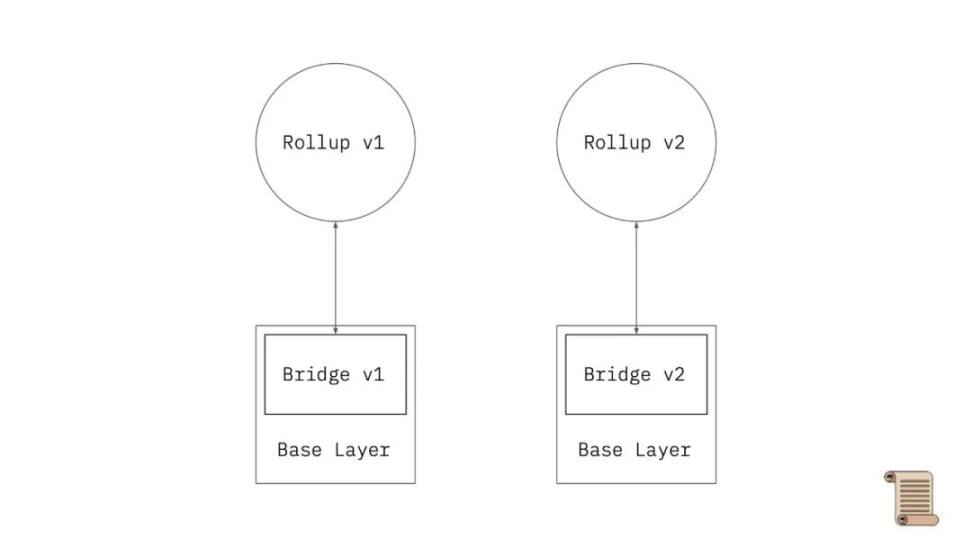 有时我们只需要对跨链桥合约做升级,Rollup 将直接链接新版本的跨链桥。