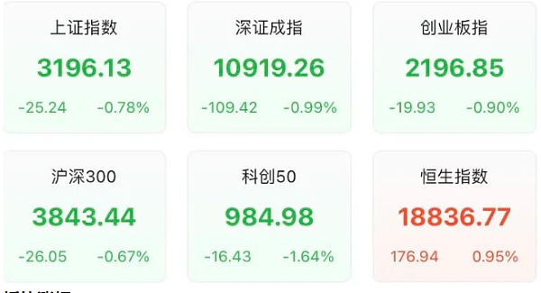 大盘全天震荡调整 AI概念近期持续回调