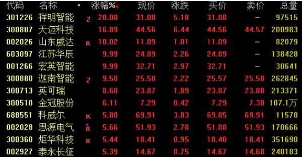 充电桩概念今日走势活跃,截至收盘,祥明智能“20cm”涨停,天迈科技涨近17%,山东威达、江苏华辰、宏英智能涨停,迦南智能涨9.5%,英可瑞涨近9%,科威尔涨近6%。