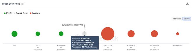 目前,已有 43,730 名投资者以 0.000007 美元的最低价格购买了总计 9.5 万亿个 SHIB 代币。如果他们在盈亏平衡时平仓,可能会引发回调。