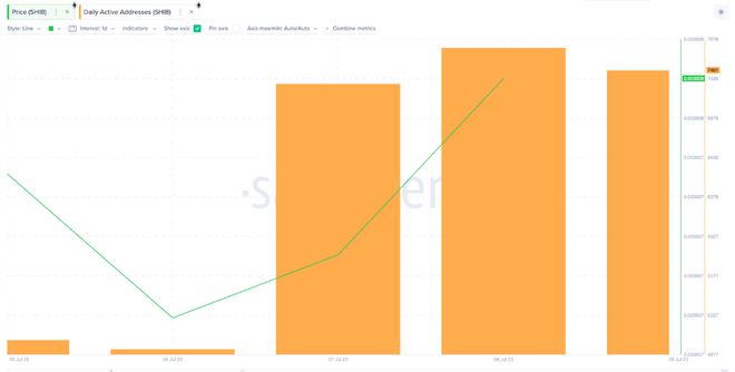 下面的 Santiment 图表说明了 SHIB每日活跃地址如何在 7 月 5 日至 7 月 10 日期间从 5,009 增加到 7,401。