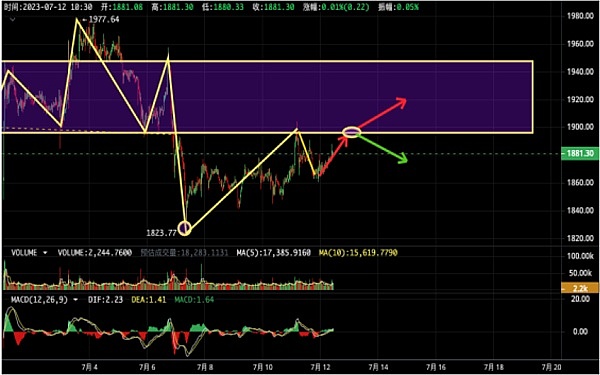 1:以太坊日内关注半年线120日均线1850附近的支撑情况,此位置未有效跌破前,操作思路仍以靠近此区域逢低做多为主.