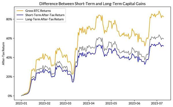 目前,美国大多数投资者可以使用的主要税收优惠账户,包括个人退休账户(IRAs)、401(k)计划和健康储蓄账户(HSAs),不允许直接投资数字资产,尽管有一些明显的例外,包括富达(Fidelity)、上市矿业公司和 Microstrategy。这一限制阻碍了推迟或抵消与数字资产投资相关的税收能力,这对投资者来说是一个相当大的不利因素。即使对于选择自托管的投资者来说,这些账户仍然非常重要,因为即使是稍微减少资本利得税支付,也会明显影响投资的整体表现(尤其是当短期资本利得税率适用时,如下所示)。