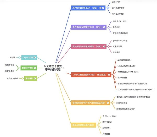 6 月份,以太坊的创始人 V 神在自己的博客中所指出的,以太坊目前面临着一些重要的挑战和问题,这些问题需要得到解决才能推动以太坊的进一步发展,否则以太坊将走向失败,这样三个转变的方向分别是:智能合约钱包、隐私保护和 Layer 2 扩容。成功转型后,以太坊将在性能、用户体验和隐私 护等方面有所改善。
