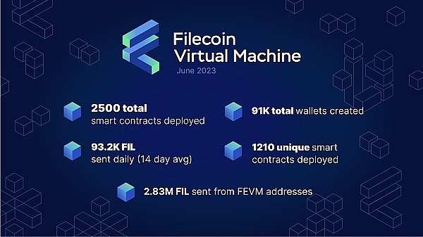 2023年是Filecoin生态年,在FEVM 推出近4个月后,平台上部署了 2500 份合约,14天日均交易量超过93.2K FIL,用户创建了91k个钱包地址,FVM生态呈现出一派欣欣向荣的景象。