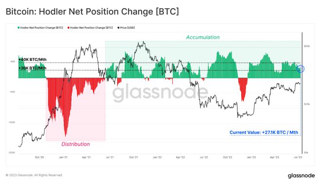 尽管价格继续小幅波动,但交易者似乎对代币的长期前景非常有信心。投资者一直在不断积累代币。根据热门链上平台 Glassnode 的数据,交易者平均每月积累 2.71 万 BTC。