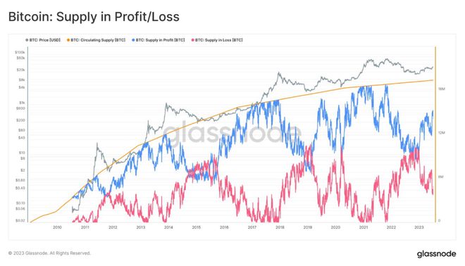 因此,现在价格窄幅震荡,或许是吸筹的好时机。另一方面,交易者似乎正在从他们持有的比特币中获利;利润的供应正在增加,而损失的供应正在迅速减少。