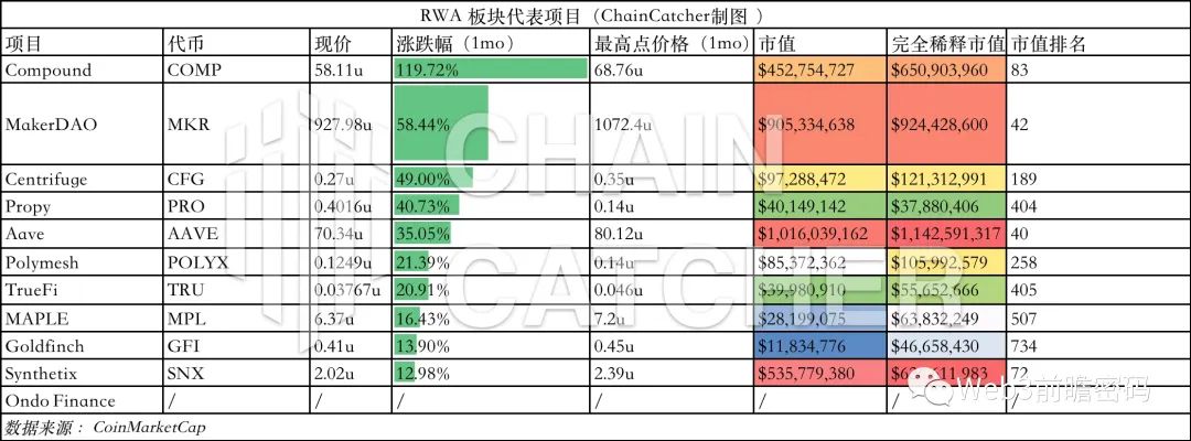 经过年初几个月的酝酿,老 DeFi 协议和国家队入场的接连助攻,让此次 RWA 二级市场的反应强烈,MRK、COMP 等代币大幅上涨。