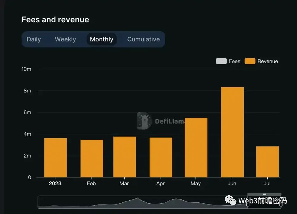 而将资产负债表中资产更有效地分配到国债和投资级债券,以及向 DAI 借款人收取的费用增加,让 MakerDAO 的收入有可观的增长。根据 Defilama 数据,MakerDAO 在 6 月份利润达到 832 万美元,而 5 月份为 548 万美元,4 月以前都是 300 多万美元。随着收入利润上涨,6 月份,MakerDAO 宣布 DAI 存款利率从 1% 上调至 3.49%,增长超过 3 倍多。