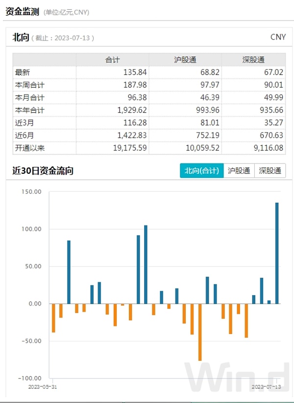 数据显示,7月13日,北向资金净买入A股近136亿元,创今年1月底以来单日净买入新高。