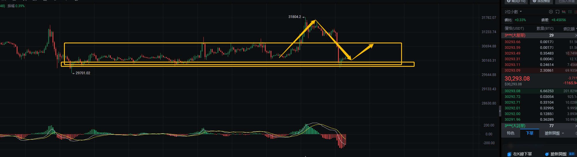 大饼1H的结构,目前大饼的话可以看到又重新回到中枢之中震荡了。这里往上的话估计30900左右。如果能够突破30900的话,那么又再一次突破中枢。可能又跌拉回昨天的高点。就目前市场个人给我的感觉就是在疯狂的洗盘。具体洗多还是洗空,我也说不准,我个人是现货为主,合约小玩怡情。所以我当然希望上涨,但是下跌也无虑,能够拿到更低价格的标的那是更加开心的。
