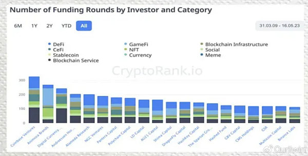 在VC投资类别方面处于领先的首先是DeFi,其次是GameFi,然后是基础设施。