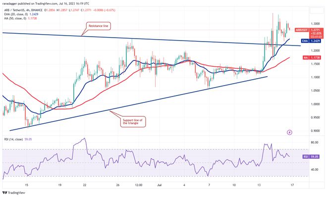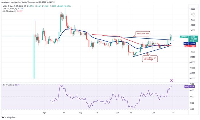 Arbitrum (ARB) 于 7 月 15 日突破并收盘于对称三角形形态之上,表明多头已经压倒了空头。