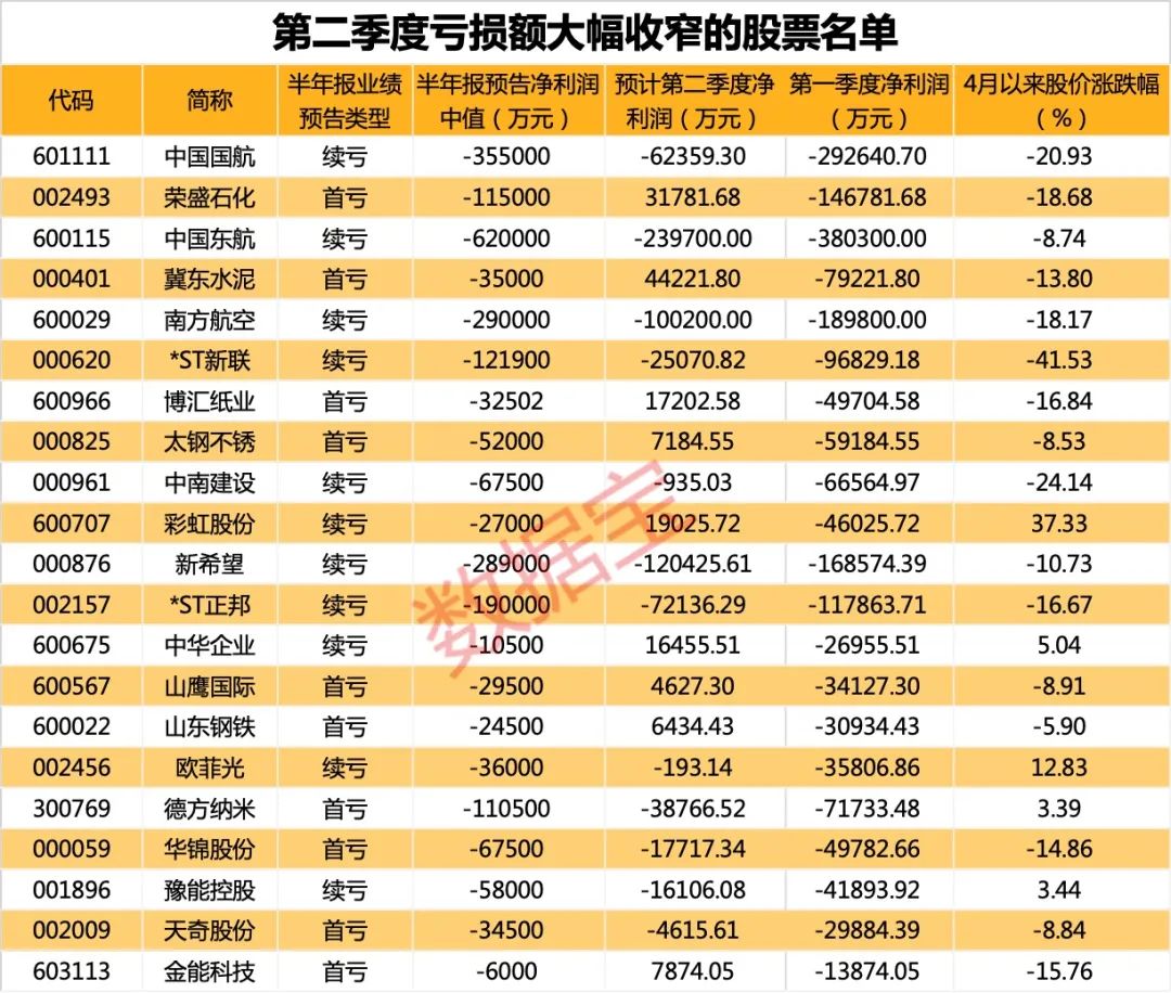 不过从单季数据来看,受益于旅游产业回暖,中国东航和中国国航的业绩亏损额已较一季度大幅度收窄。*ST泛海的亏损额有所扩大,公司预计上半年净利润亏损42亿元至55亿元,公司今年一季度净利润亏损13.08亿元。