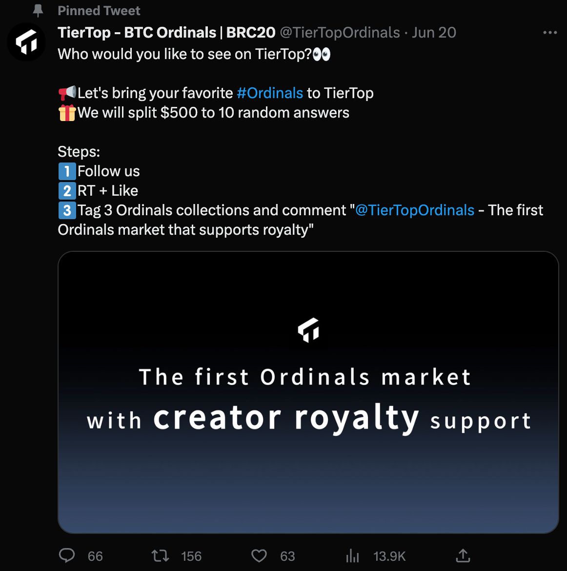 TierTop – BTC 上的首个免费公平发射平台, Ordinals 赛道黑马?
