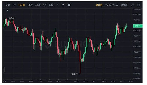至于在以太坊价格方面,ETH 在今日接近01:00 时虽然因大盘回落一度跌至1,875 美元,但随后又快速拉回,震荡走高下价格又重新站回1900 美元以上,截稿前现报1911 美元,近24 小时上涨0.1 %。