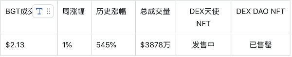 7月16日,BGT(BG Trade)Staking矿池达到4347万枚,总成交量达到3878万美元。BGT周成交均价为2.13美元BGT发行价折合0.33美元,历史涨幅为545%。