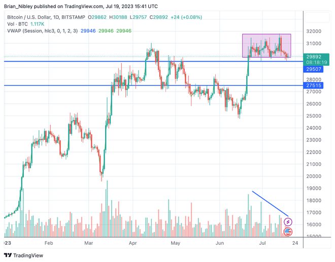 经过 2023 年上半年的辉煌表现后,比特币 (BTC) 的价格似乎陷入停滞,徘徊在 29,000 美元至 31,500 美元之间。