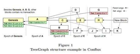 树图共识算法是 Conflux 采用的一项关键创新技术,与以太坊、比特币等现有区块链一次只能确认一个区块不同,Conflux 的树图结构允许同时确认多个区块。