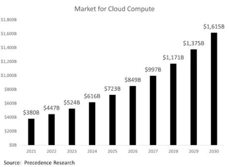 Filecoin 最终的目标是成为全栈云服务提供商,并成为 AWS、Google Cloud 和 Azure 等 Web2 提供商的有效替代品。考虑到云计算的市场数据,Filecoin 值得关注 ,他们在中国概念币叙事兴起之前就已经存在,并且将继续存在下去。