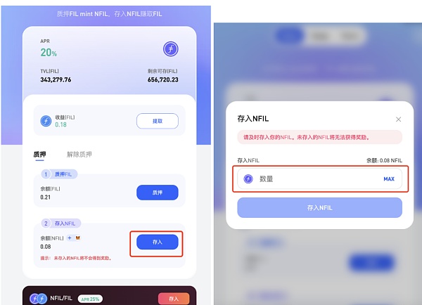 点击存入(一定及时,晚一点就可能少一些收入),并输入数量(应该每个人都会直接点MAX吧?)