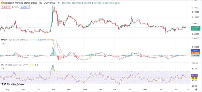 狗狗币多头积聚力量,价格飙升至 0.07000 美元