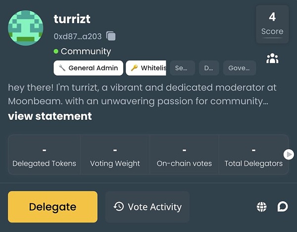 Turrizt是Moonbeam生态中一位充满活力且专注的OG,从Moonbeam生态早期开始深度参与社区和生态成长。您经常可以在论坛上发现Turrizt的身影,他积极参与各种提案的讨论和倡议,以客观的态度,提出专业性的质疑和建议,努力增强网络并培育繁荣的社区。