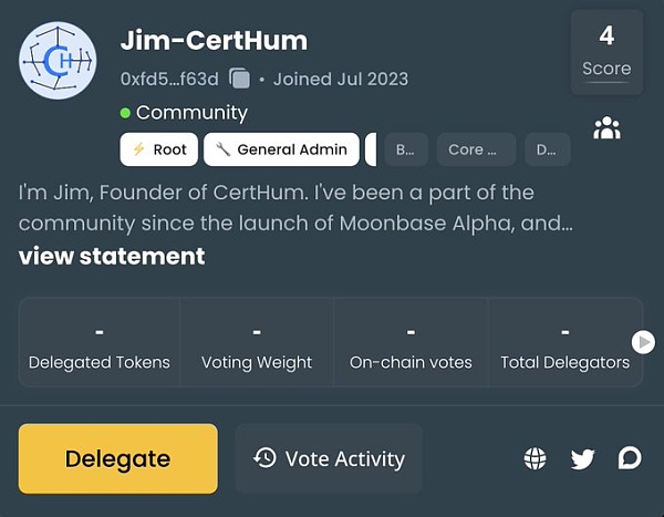 Jim表示他之所以参加代表团计划是因为他相信Moonbeam发展潜力无限,与社区一起确保它持续在正确的道路上前进。