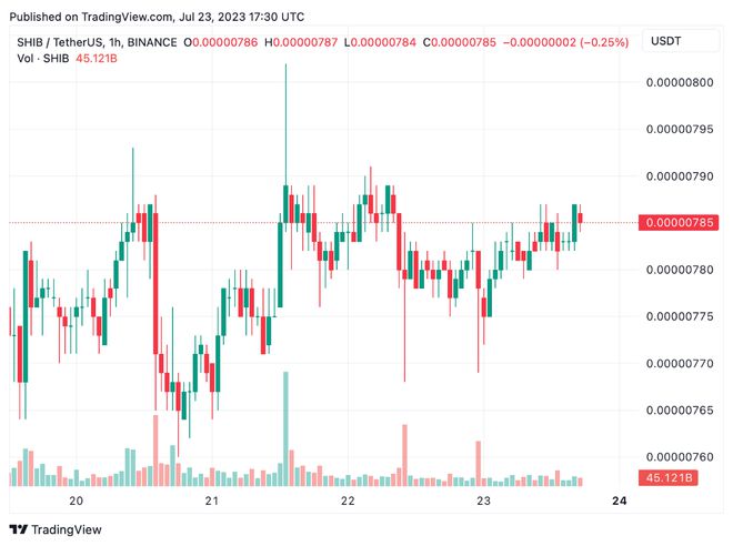 过去一个月,SHIB 兑美元汇率上涨了 1%,但 7 天统计数据显示,过去一周下跌了 2.7%。SHIB的市值为46.1亿美元,占meme币经济净值的28.29%。与狗狗币相结合,这两种货币占据了模因币经济的 90.41%。