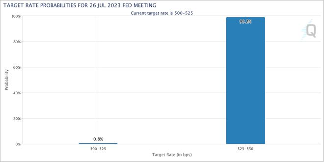 根据CME 集团的 FedWatch 工具,截至 7 月 23 日,这一可能性为 99.2%。