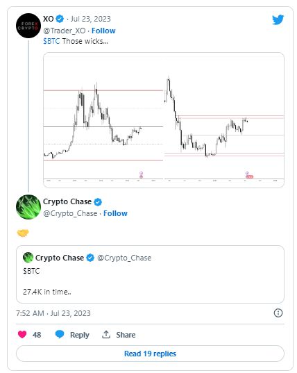 “如果上方出现突破,请不要欣喜若狂。我们确实处于最高水平。如果有核武器,下一个关键区域是 27-28k。如果它保持住,准备回调买入。如果跌破19-23k以下仍有可能。一层一层地玩。就是这样。”
