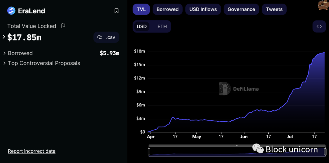EraLend 在最近几周内火了起来,因为他们的 TVL 自 6 月 1 日以来已经从 390 万美元猛增到 2435 万美元(官网的最新数据,defillama 数据延迟):