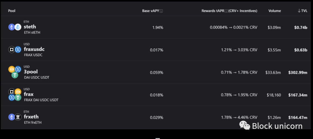 现在,Curve 的 stETH/ETH 池是 DeFi 中最突出的 LSD 池,TVL 约为 7.4 亿美元。他们在 frxETH/ETH 池中也有超过 1.64 亿美元,这是他们在主网上的第五大资金池。