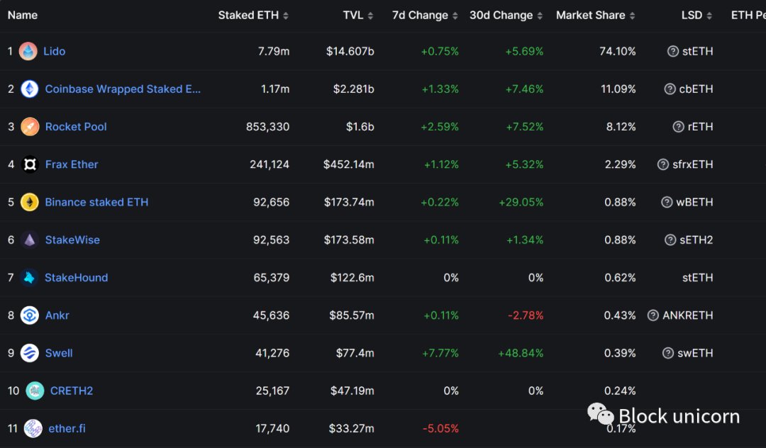 另一种方式是 LSD 提供商最常见的路径。到目前为止,Lido 的 stETH 已经占据了市场的近 75%。