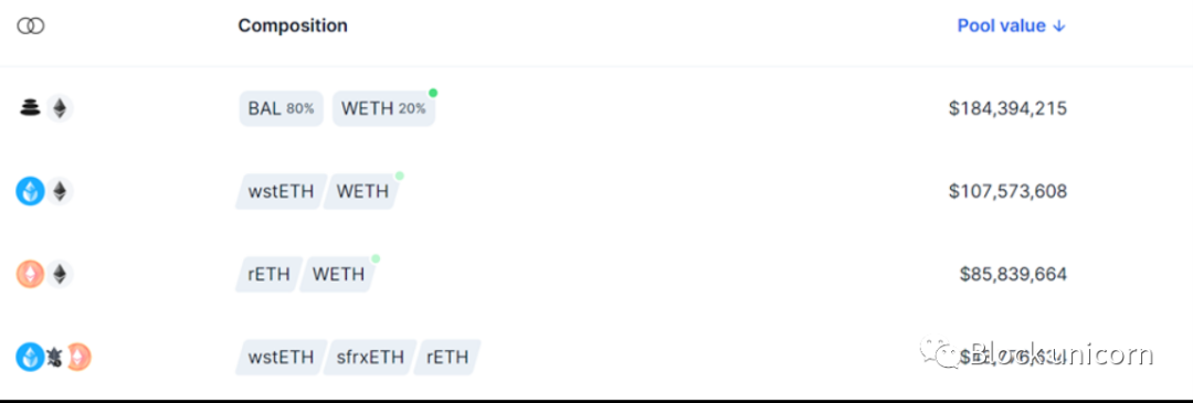 Balancer——他们在主网上的前 4 个池中有 3 个与 LSD 有关,他们的 TVL 超过 1.36 亿美元,占他们总 TVL 的 13% 以上。