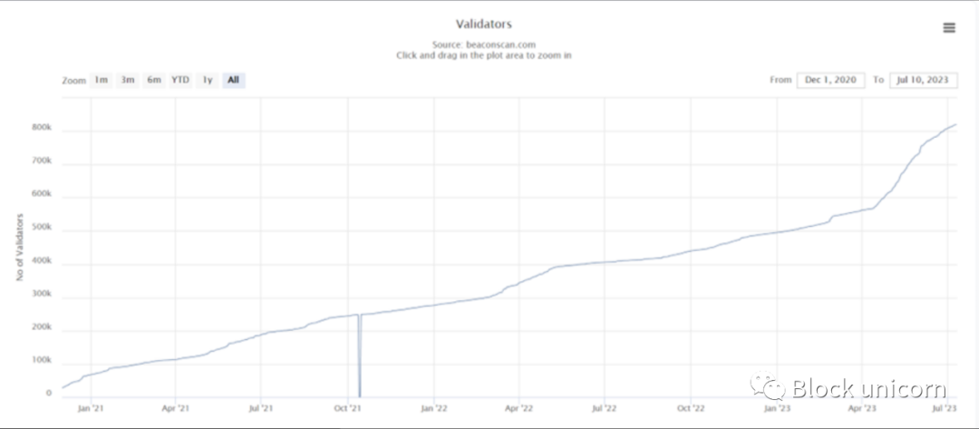 今年早些时候,许多人认为这些协议会因为质押需求的增加而受益,特别是在以太坊网络质押提现被开启后。我认为可以肯定地说,这个趋势以极其看涨的方式发展。只需看一下验证者数量的增加: