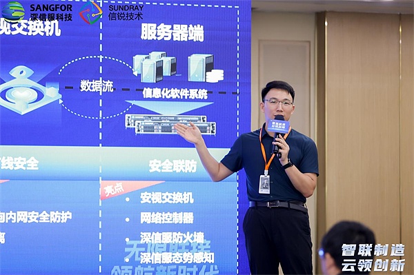 近日,深信服科技、信锐技术联合智能制造系统解决方案供应商联盟在深圳举办了以“智联制造 云领创新”为主题的智能制造企业转型发展研讨会。来自全国各地的制造企业代表们齐聚一堂,共同探讨前沿技术发展和智能制造实践经验。