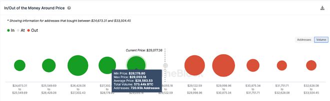 上述因素表明,BTC 可能会在 28,000 美元附近找到支撑。在该地区,720,000 名投资者以 28,500 美元的平均价格购买了 573,440 BTC。