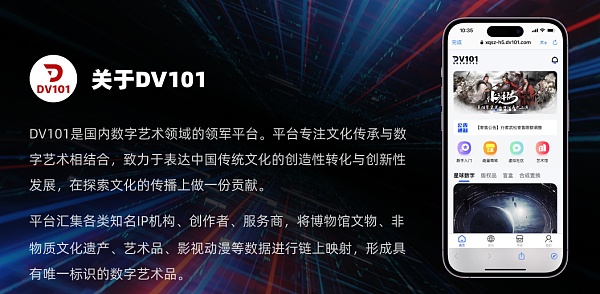 DV101是国内数字艺术领域的领军平台。平台专注文化传承与数字艺术相结合,致力于表达中国传统文化的创造性转化与创新性发展,在探索文化的传播上做一份贡献。