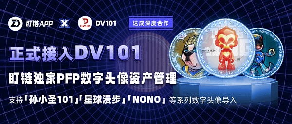 为了提升用户在元宇宙中的体验感,盯链作为领先的Web3服务平台,在近期引入了独家PFP数字头像资产管理。并与DV101强强联手,用户可以将自己在DV101持有的数字头像资产导入到盯链平台上,能够在盯链上展示自己独一无二的数字头像,也可以更加方便地管理自己的数字头像资产。