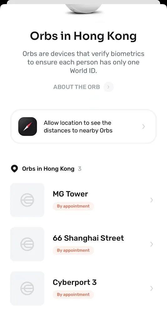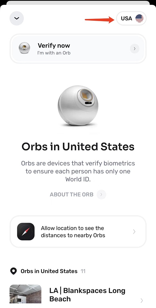 1. 打开World App并切换到账户页面。向下滚动到“用球体验证”并点击箭头。(确保已经下载了 World App)