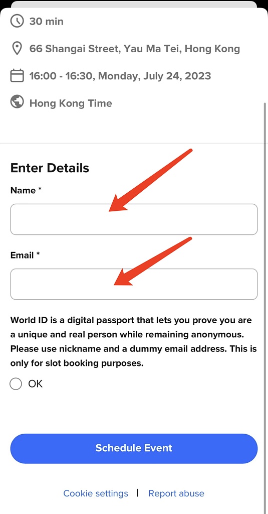 6. 输入您的姓名和电子邮件以接收确认消息。