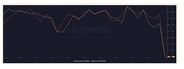 资金流量指数(MFI)下跌,然后横盘走势增加了不确定性。链上数据还显示,以太坊的交易数量降至过去四个星期以来的最低水平。