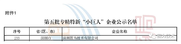近日,国家第五批专精特新“小巨人”企业名单完成公示。深圳图为技术有限公司(简称“图为技术”)通过相关审核,顺利荣获2023年第五批国家级专精特新“小巨人”企业称号。